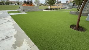Samueli Academy, a forward-thinking public charter school in Santa Ana, faced challenges with maintaining green spaces on its campus. The school desired a sustainable solution that would reduce maintenance costs and provide a consistently green, mud-free area for students. This led to the installation of artificial grass in key areas: the front planters in the driveway and drop-off area and under the shade area next to the football field.